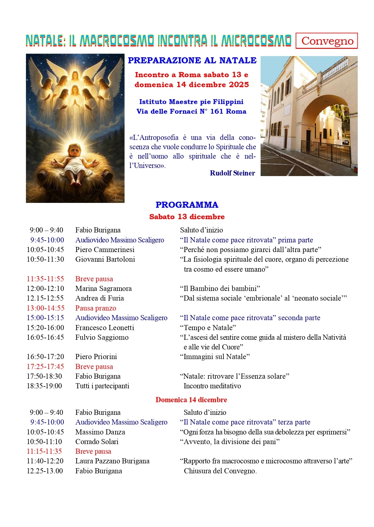 Incontro a Roma, Sabato 13 e Domenica 14 Dicembre 2025