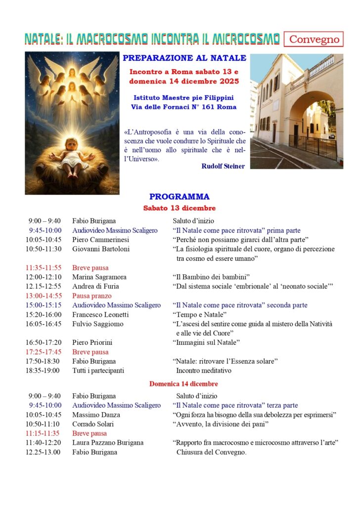 Incontro a Roma, Sabato 13 e Domenica 14 Dicembre 2025
