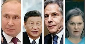 I presidenti russo e cinese, Vladimir Putin e Xi Jinping; gli Straussiani del dipartimento di Stato, Antony Blinken e Victoria Nuland